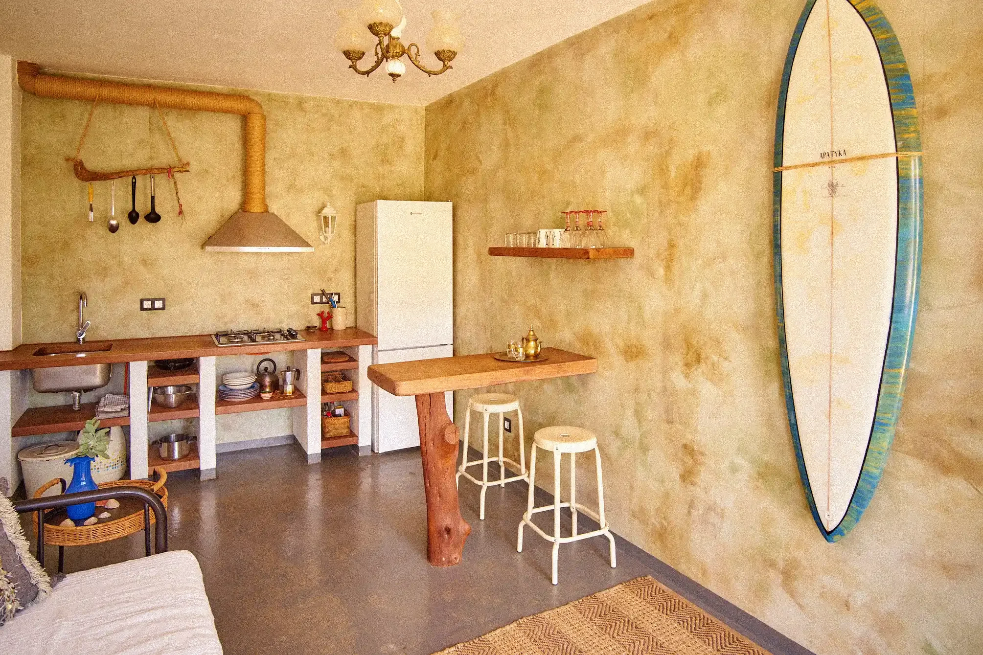 Ubytování pro 4 osoby v krásném bungalu Costa Áquila. Ve stejném stylu jako Barranco Ballena. Má společné sociální zařízení a kuchyň s pokojem Fuego a Barranco Ballena.