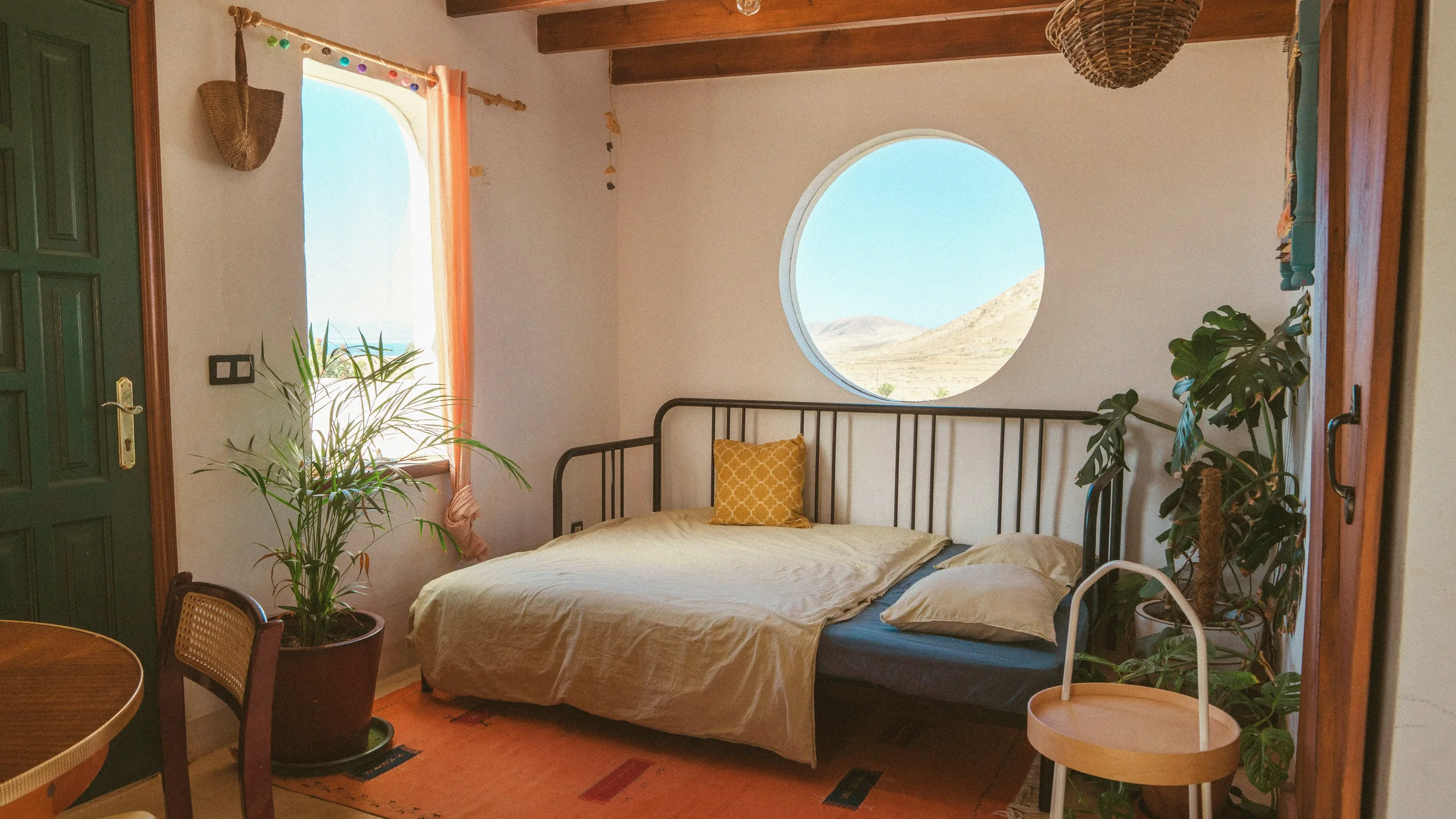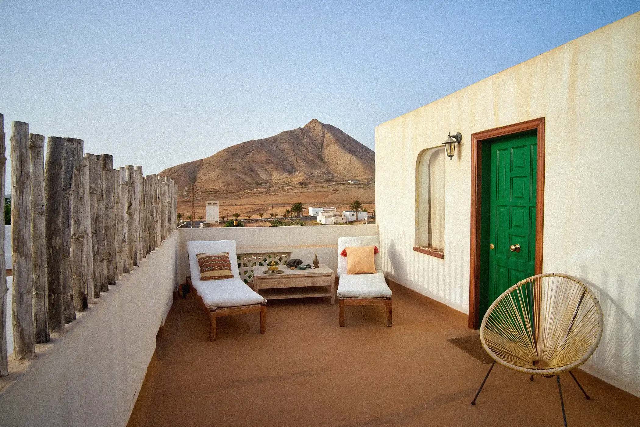 Ubytování pro 4 osoby v apartmánu Aire. Má vlastní kuchyň, koupelnu a terasu na střeše s krásným výhledem na horu Tindaya.